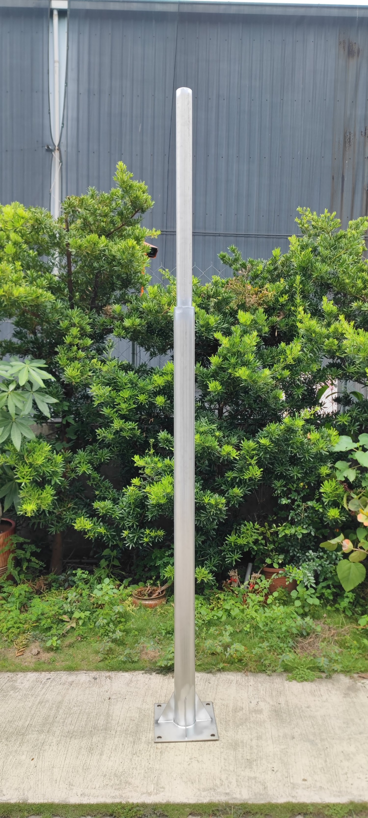 使用4"管2米+3"管1米接合,總高度3米。階梯造型讓立柱不再死板。